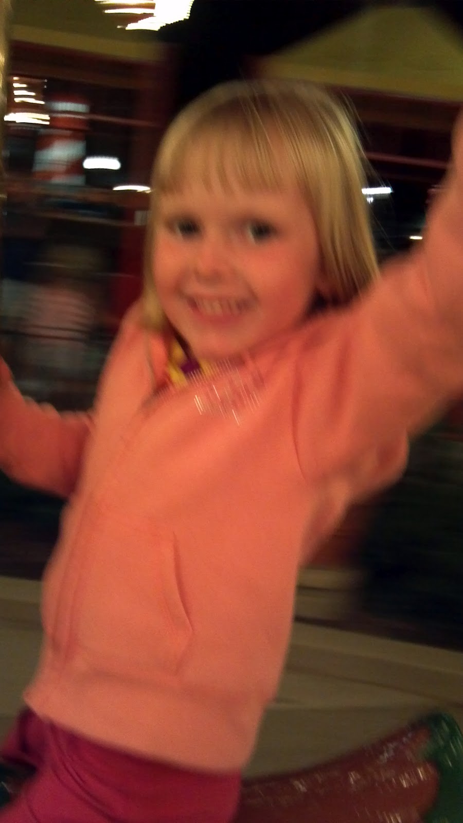 And then she smiled on the merry-go-round!  Blurry, but cute.